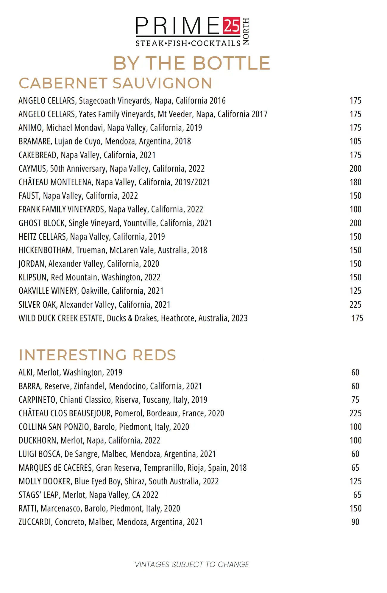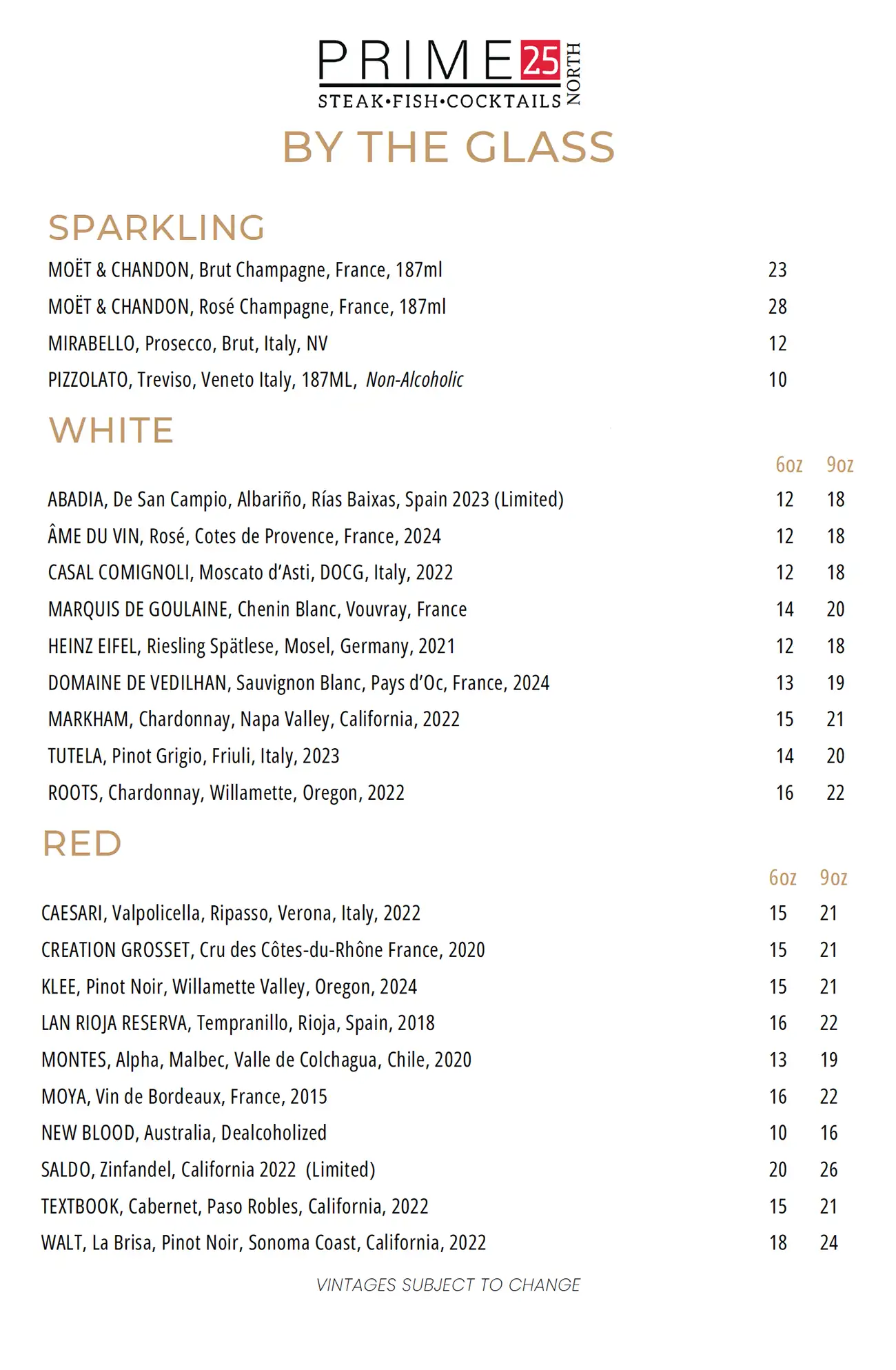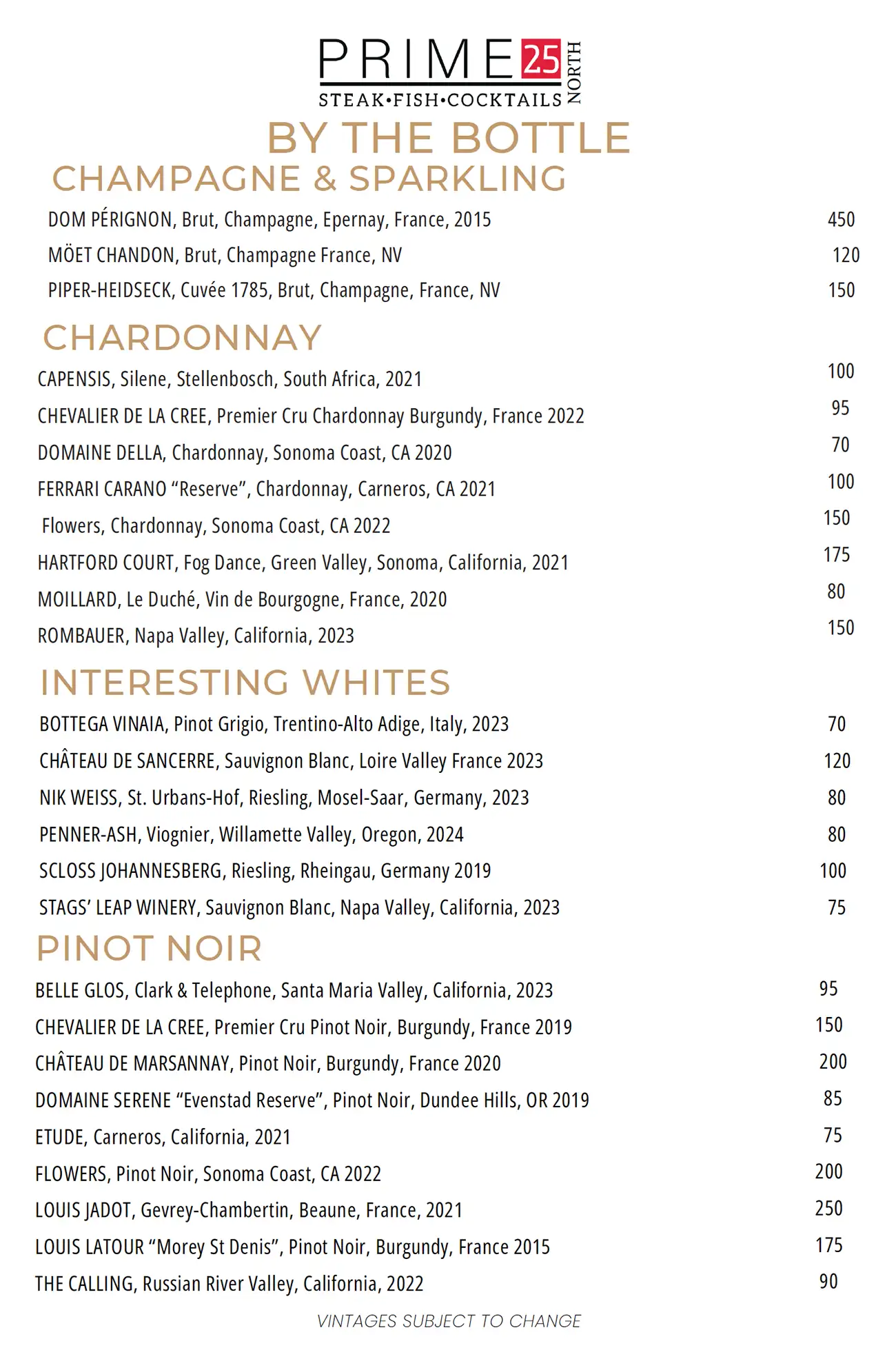 The luxury dining experience at Prime25 North in Colorado Springs extends to our bar, featuring an extensive and meticulously curated drink menu. Whether you seek a classic vintage, a sparkling celebration, or an innovative signature cocktail, our list of wines and mixed drinks is designed to perfectly complement our modern steakhouse fare. To ensure the ultimate pairing, our knowledgeable staff is always available to offer expert recommendations tailored to your chosen meal.